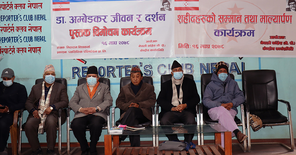 काठमाडौं । पूर्वसांसद डा.मिठाराम विकद्वारा लिखित ‘डा.अम्बेडकरको जीवन र दर्शन’ पुस्तक बिमोचन गरिएको छ । नेपाली कांग्रेस (वी.पी) केन्द्रीय कार्यसमितिले आज एक कार्यक्रमबीच पुस्तक विमोचन गरेको हो ।