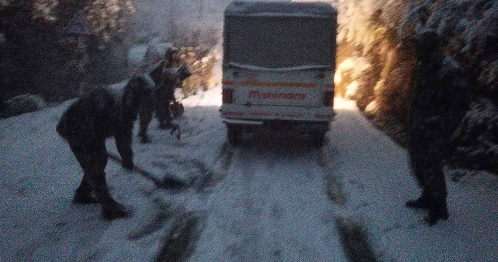 दशरथचन्द राजमार्गअन्तर्गत बैतडीको देहिमाण्डौ क्षेत्रमा सडकमा जमेको हिउँ हनुमानध्वज गुल्ममा कार्यरत नेपाली सेनाको टोली पन्छाउँदै छन् । उप–सेनानी बालाराम बुढाथोकीको कमाण्डमा खटिएको ३५ जनाको टोलीले हिउँ पन्छाएर सवारी आवागमन सञ्चालनमा ल्याएको हो ।