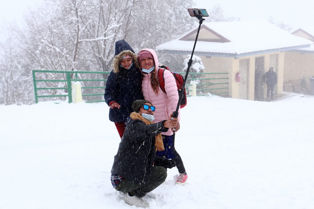 चन्द्रागिरि डाँडामा परेको हिउँमा रमाउँदै नागरिक (फोटो फिचर)