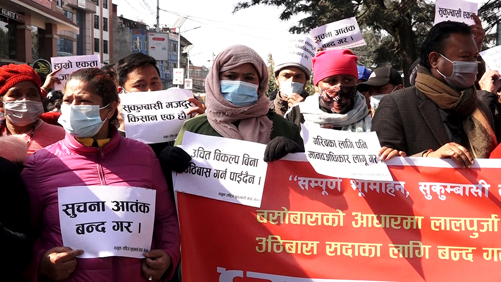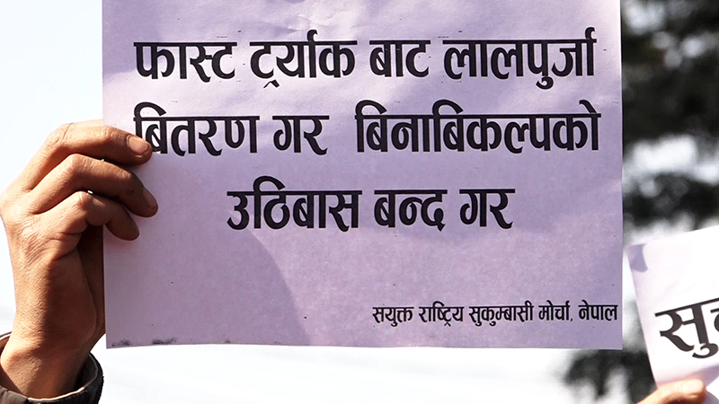 सुकुम्बासी मोर्चाले भन्यो– एउटा सरकारले लालपुर्जाका लागि फर्म भर्ने, अर्काे सरकारले उठिवासको सूचना टाँस्ने
