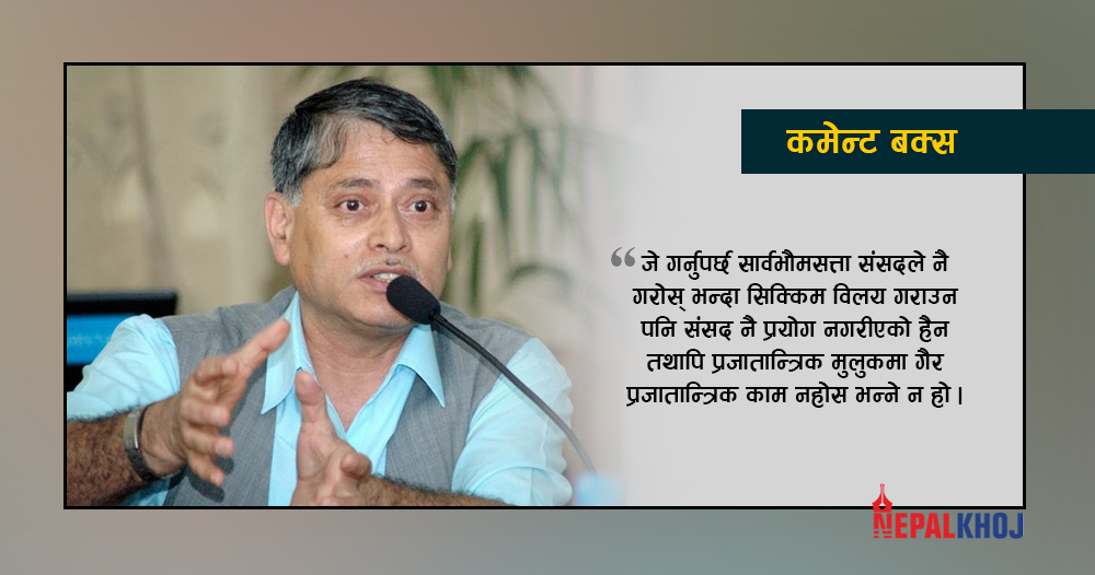 जे गर्नुपर्छ सार्वभौमसत्ता संसदले नै गरोस् भन्दा सिक्किम विलय गराउन पनि संसद नै प्रयोग नगरीएको हैन तथापि प्रजातान्त्रिक मुलुकमा गैर प्रजातान्त्रिक काम नहोस भन्ने न हो ।
