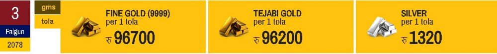 त्यसैगरी, चाँदीको मूल्य २० रुपैयाँले बढेको छ । आज चाँदी १३ सय २० रुपैयाँमा कारोबार भइरहेको महासंघले जनाएको छ ।