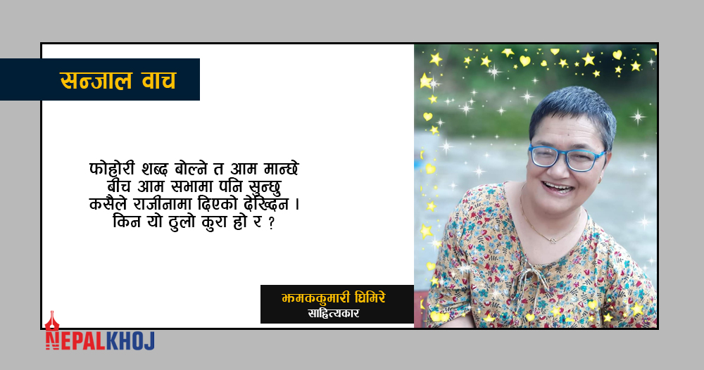 फोहोरी शब्द बोल्ने त आम मान्छे बीच आम सभामा पनि सुन्छु कसैले राजीनामा दिएको देख्दिन । किन यो ठुलो कुरा हो र ? त्यो आपसमा भनेको कुरा थियो अनि आम सञ्चारमा आयो र मात्र ।