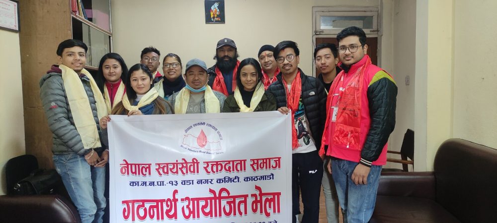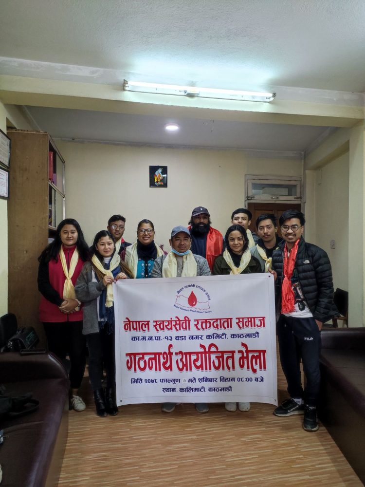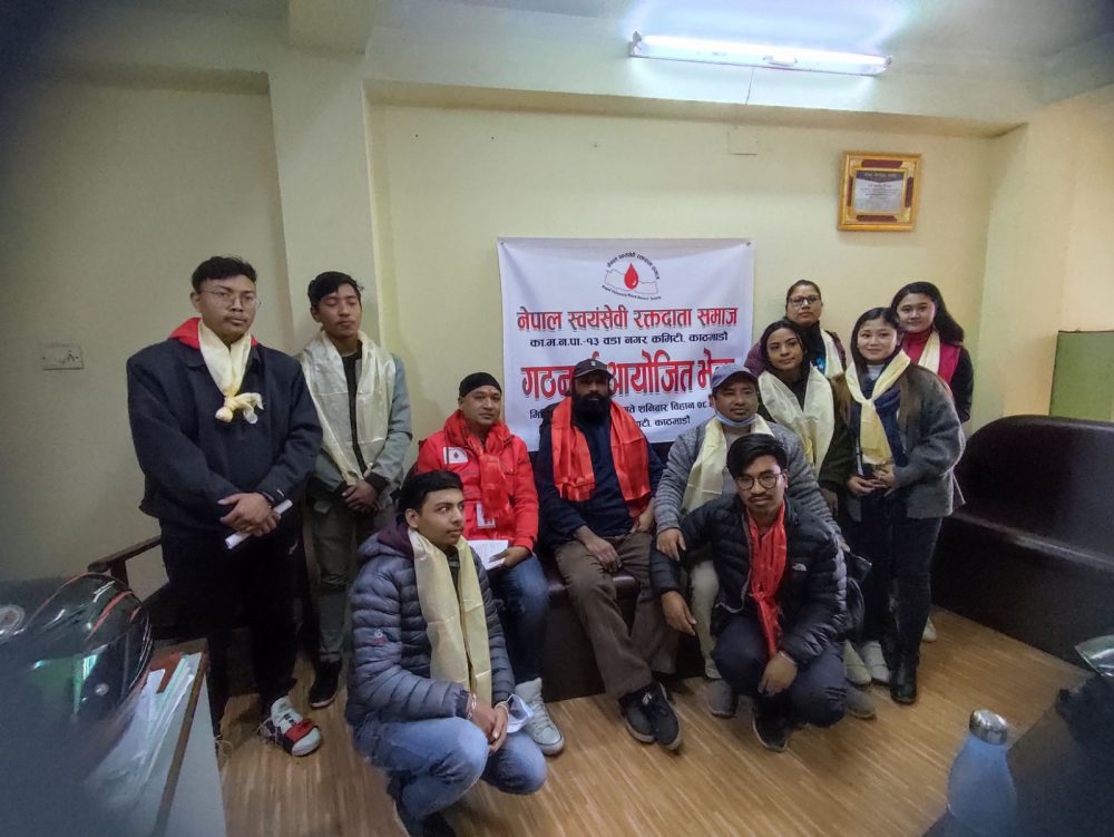 नेपाल स्वयंसेवी रक्तदाता समाजका केन्द्रीय अध्यक्ष एवं स्वयंसेवी शतक रक्तदाता प्रेमसागर कर्माचार्यको प्रमुख आतिथ्यतामा आयोजित भेलाले स्वयंसेवी रक्तदाता निरु महर्जनको अध्यक्षतामा काठमाडौं महानगरपालिका १३ नं. वडा नगर समिति सर्वसम्मत चयन गर्दै गठन गरिएको छ ।