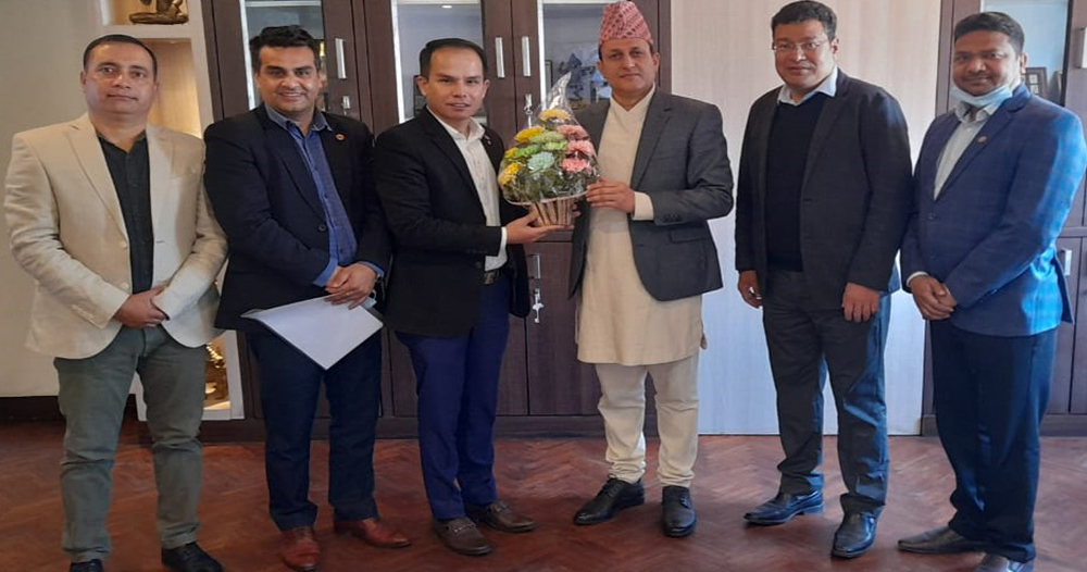 काठमाडौं । नेपाल अटोमोवाईल डिर्लस एसोसिएसन (नाडा) र भन्सार बिभागका नव नियुक्त महानिर्देशक कमल भट्टराईबिच भेटवार्ता भएको छ । नाडाका अध्यक्ष धु्र्व थापाको नेतृत्वमा सात सदस्यीय प्रतिनिधि मण्डलले आज भन्सार विभागका नव नियुक्त महानिर्देशक भट्टराईलाई स्वागत गर्दै भेटवार्ता गरेको हो ।