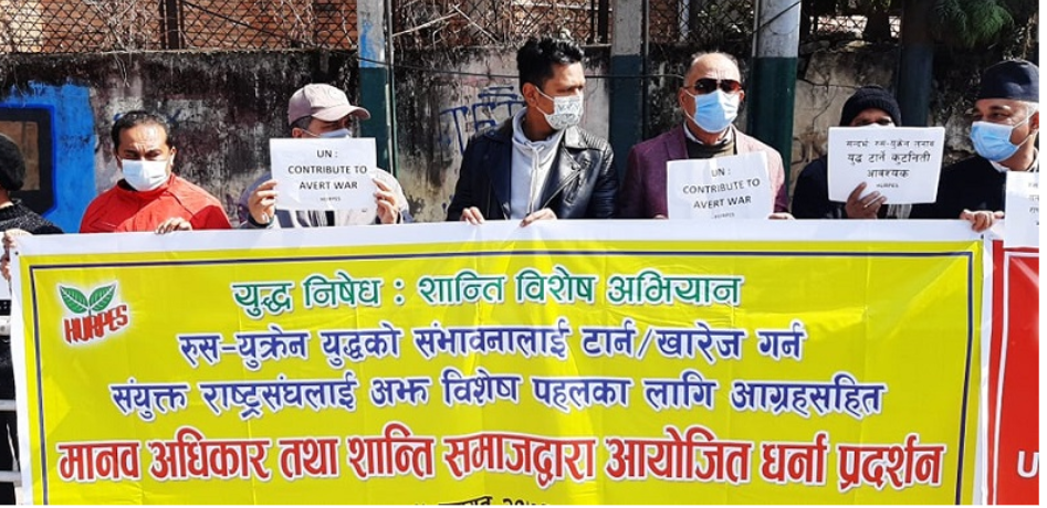 रुस-युक्रेनबीचको तनाव रोक्न माग गर्दै मानव अधिकार तथा शान्ति समाजको प्रदर्शन