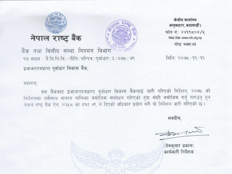 पूर्वाधार विकास बैंकले प्राथमिक पुँजीको शतप्रतिशत डिबेन्चर जारी गर्न पाउने