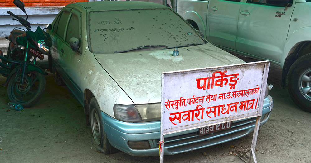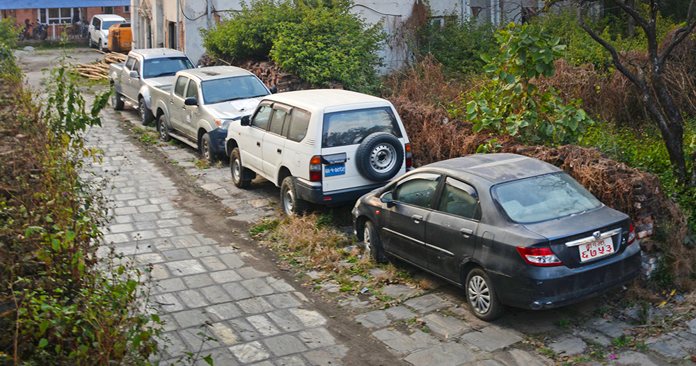 सरकारी कार्यालयका परिसरमा मा वर्षौंदेखि सवारी साधन थन्किँदा कार्यालय थोत्रा गाडिका ग्यारेजजस्तै बनेका छन् । केही बर्षअघिसम्म सिंहदरवार परिसरमा बग्रेल्तै देखिने केही पुराना गाडी हटाइए पनि सिंहदरवार बाहिरका सरकारी कार्यालयमा पुराना गाडी अझैं देखिन्छन् । पार्किङ र खुला ठाँउमा राखिएका यस्ता गाडी झारपातले ढाकिएका छन् ।