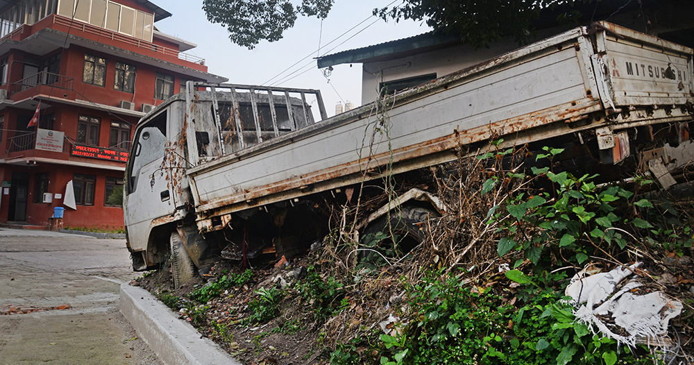 कार्यालय परिसरको कुनामा थुप्रिएका धुलाम्मे साइकल, मोटरसाइकल र जीप कारले परैबाट जिस्काइरहेका जस्तो देखिन्छ । ती वर्षौंदेखि थन्किएका गाडि मक्किएर, सडेर काम नलाग्ने अवस्थामा पुगेका छन् ।