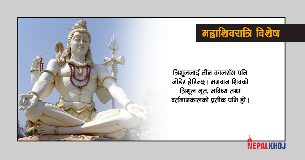 महाशिवरात्रिका दिन भगवान् शिवले साकार स्वरुप धारण गरेका थिए भन्ने मान्यता छ । त्यसभन्दा अघि उनी परमब्रह्म सदाशिव थिए । भगवान् शिवको स्मरण गर्दा हाम्रो मनमा हातमा त्रिशूल, डमरु, शिरमा जटा, गलामा साँप भएका महादेवको विराट छवि सिर्जना हुन्छ ।