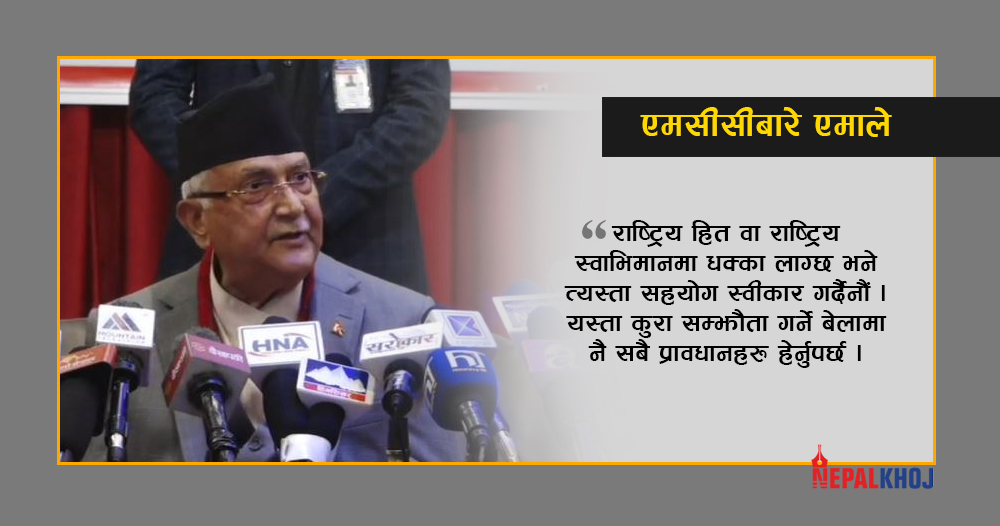 राष्ट्रिय स्वाभिमानमा धक्का लाग्छ भने एमसीसी स्वीकार्दैनाैं : केपी ओली