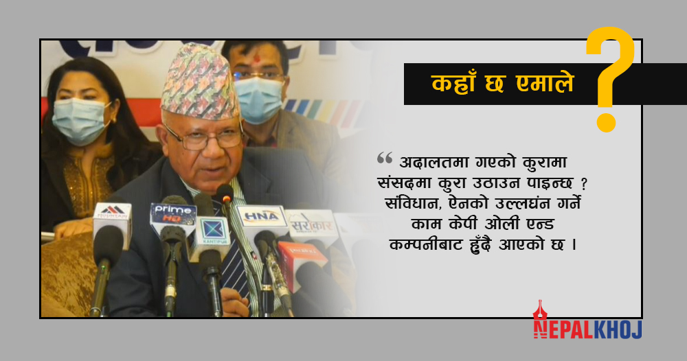 उनले आफ्नो पार्टीबारे अदालतमा समेत विषय गएको भन्दै संसद्मा त्यसलाई उठान नपाउने दाबी गरे । उनले भने, ‘अदालतमा गएको कुरामा संसदमा कुरा उठाउन पाइन्छ ? संविधान, ऐनको उल्लघंन गर्ने काम केपी ओली एन्ड कम्पनीबाट हुँदै आएको छ ।’
