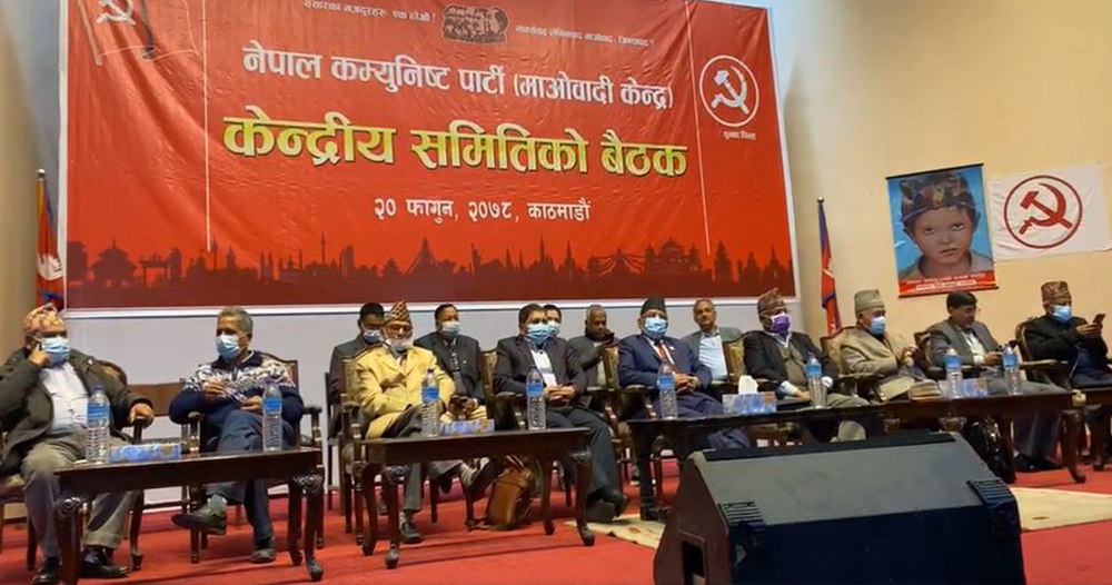 काठमाडौं । नेकपा माओवादी केन्द्रको केन्द्रीय कमिटी बैठक सुरु भएको छ । राष्ट्रिय सभागृहमा सुरु भएको बैठकमा अहिले प्रचण्डले समसामयिक विषयमा आफ्नो धारणा राखिरहेका छन्।