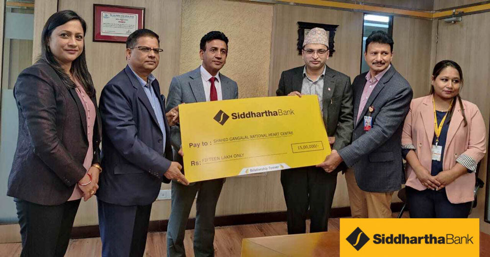 सिद्धार्थ बैंकद्वारा सहिद गंगालाल राष्ट्रिय हृदय केन्द्रलाई सहयोग