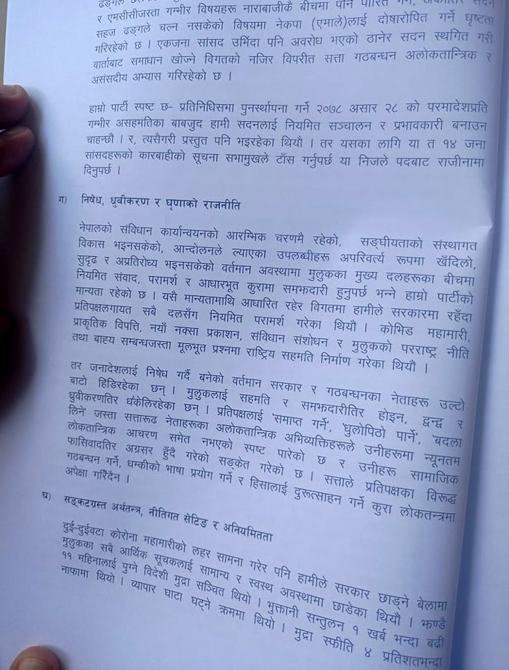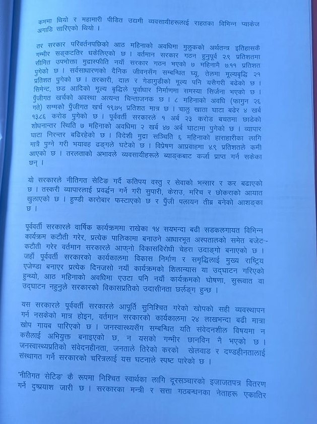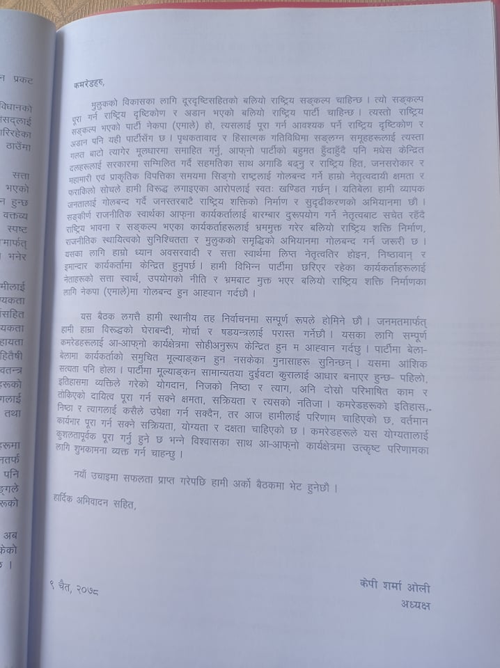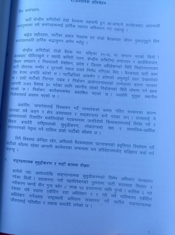 ओलीको राजनीतिक प्रतिवेदन केन्द्रीय समिति बैठकमा पेस (पूर्णपाठ)