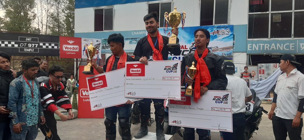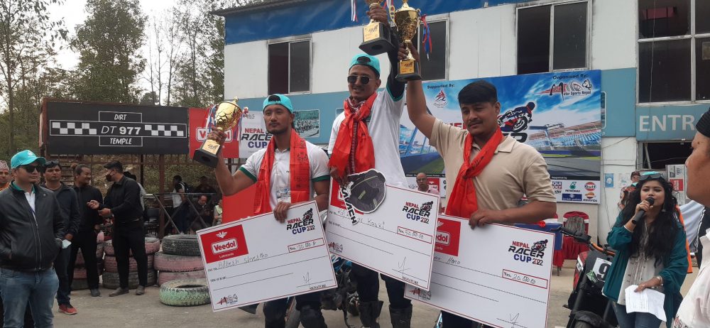 उक्त हिमालयन मोटरल्यान्डमा बाइक रेसिङ प्रतियोगिता ‘नेपाल रेसर कप २०२२’ सम्पन्न भएको छ । तीन दिनसम्म विभिन्न प्रकारको छनोट खेल पश्चात सो प्रतियोगिताको फाइनल खेल शनिबार सम्पन्न भएको हो । नेपाल अटोमोबाइल्स एसोसिएसन (नासा) को सहयोगमा मोटर स्पोर्ट्स नेपालले आयोजना गरेको सो मोटरसाइकल रेसिङ प्रतियोगिताको फाइनल खेलमा १५० सीसीतर्फ सन्दीप घिमिरे विजेता बने भने सुजन थापा मगर र महेश राना मगरले दोस्रो र तेस्रो स्थान हासिल गरे ।