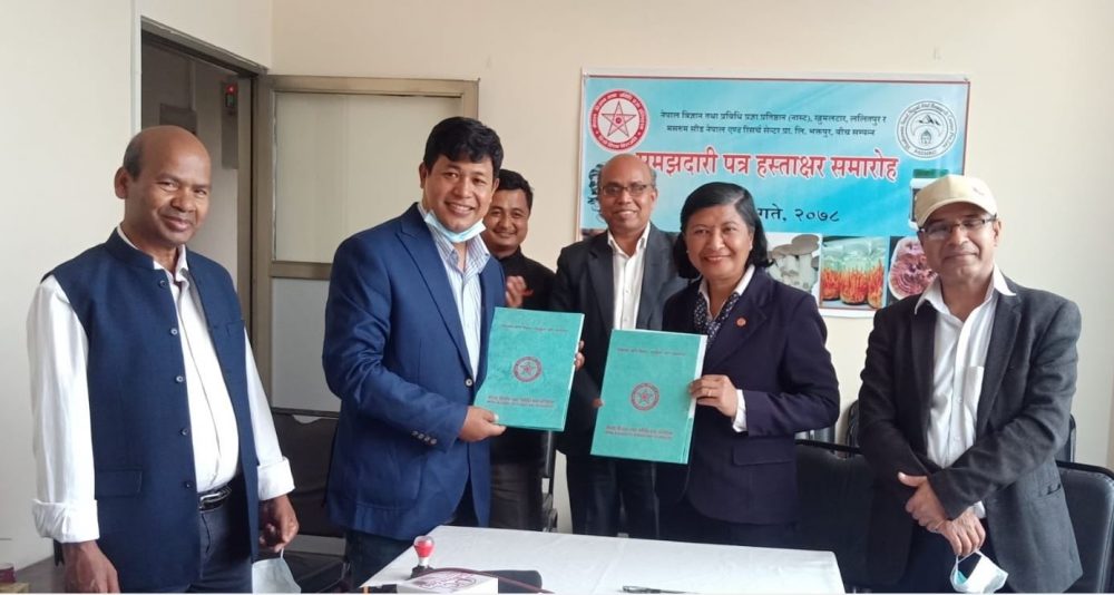 काठमाडौं । नेपाल विज्ञान तथा प्रविधि प्रज्ञा प्रतिष्ठान (नास्ट), खुमलटार, ललितपुर र मसरुम सीड नेपाल एण्ड रिसर्च सेन्टर प्रा।लि। भक्तपुरबीच एक सम्झौता भएको छ ।