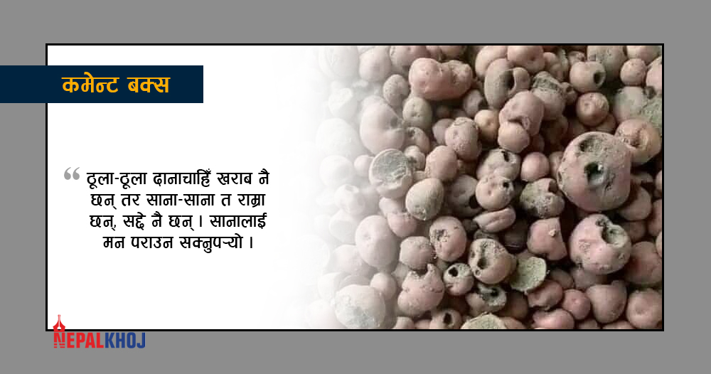 यी ठूला-ठूला दानाचाहिँ खराब नै छन् तर साना-साना त राम्रा छन्, सद्दे नै छन् । सानालाई मन पराउन सक्नुपर्यो ।