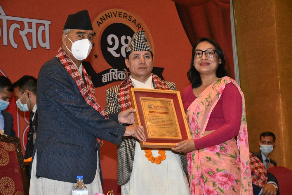 काठमाडौं । रिपोर्टर्स क्लब नेपालले आफ्नो २४औं वार्षिकोत्सवको अवसरमा विभिन्न विद्याका पुरस्कारहरु वितरण गरेको छ । क्लबले आज काठमाडौंमा आयोजना गरेको कार्यक्रममा प्रधानमन्त्री शेरबहादुर देउवाले पुरस्कार वितरण गरेका हुन् ।