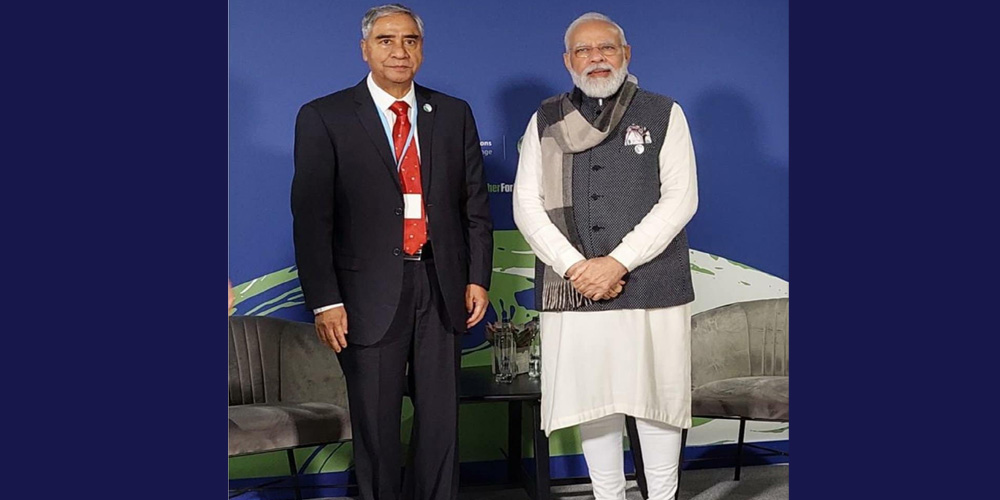 काठमाडाैं । भारत भ्रमणमा रहेका प्रधानमन्त्री शेरबहादुर देउवा र भारतका प्रधानमन्त्री नरेन्द्र दामोदरदास मोदीसँग हैदरावाद हाउसमा आज भेटवार्ता हुने भएको छ ।