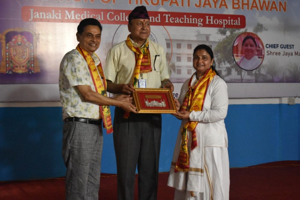 काठमाडौं । मधेस प्रदेशको धनुषास्थित जानकी मेडिकल कलेजको नयाँ भवनको अनावरण गरिएको छ । जानकी मेडिकल कलेजले चर्चित जयामाताको प्रमुख आतिथ्यमा भव्यकार्यक्रम आयोजना गरी कलेजको नयाँ शैक्षिक भवन ‘तिरुपति जया भवन’को अनावरण गराएको हो । उक्त भवनलाई जयामाताकै नाममा नामकरण गरिएको छ ।