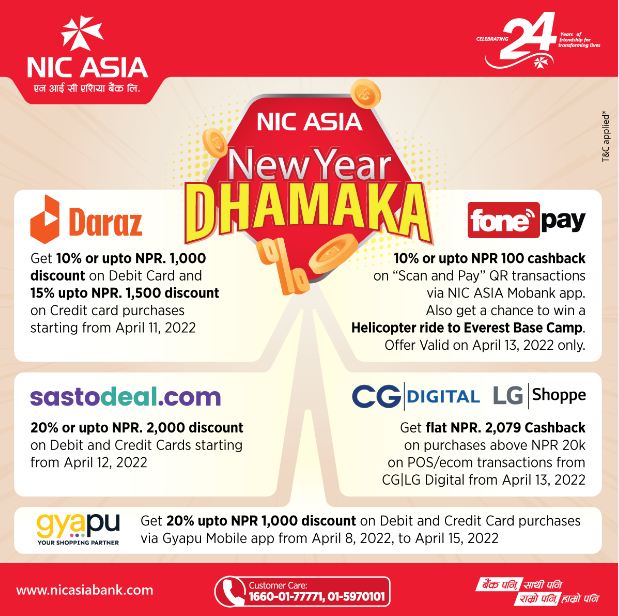 एनआईसी एशियाको नयाँ वर्ष योजना : डिजिटल भुक्तानीमा २० प्रतिशतसम्मकाे छुट