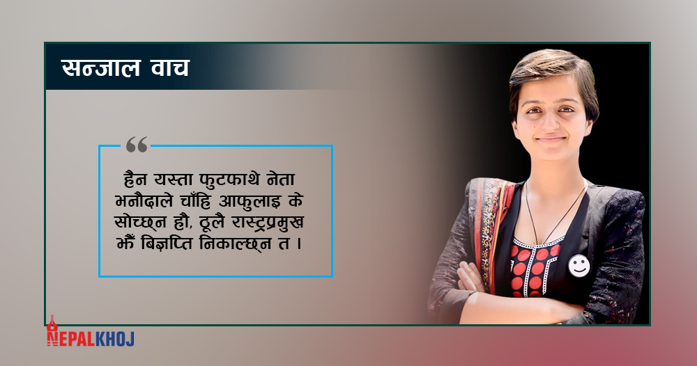 समाज र समग्र देशकै रुपान्तरणको बिगुल मानेको थिएँ हजुरलाइ कुनै समय। फ्यान नै भएको थिए तर वैकल्पिक शक्तिको खुट्टा यति छिटो काप्यो अचम्म लाग्छ । अब कथित न्यायप्रेमी वनेर सामाजिक सञ्चालनमा हिरोगिरी छोड्नुस । मान्नुस नमान्नुस तपाईं जस्ता युवाले प्रोत्साहित भन्दा निरुत्साहित भएका छन।