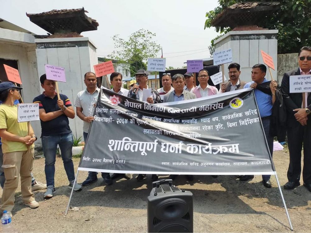 निर्माण व्यवसायीले बिहीबारदेखि बालुवाटारमा एक घण्टा धर्ना दिने