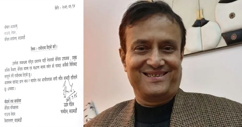 काठमाडाैं । राप्रपा नेपालका उपाध्यक्ष उद्धव पौडेलले पार्टी परित्याग गरेका छन् । अध्यक्ष कमल थापालाई सम्बोधन गर्दै उनले बुधबार राजीनामा पत्र बुझाएका हुन् ।