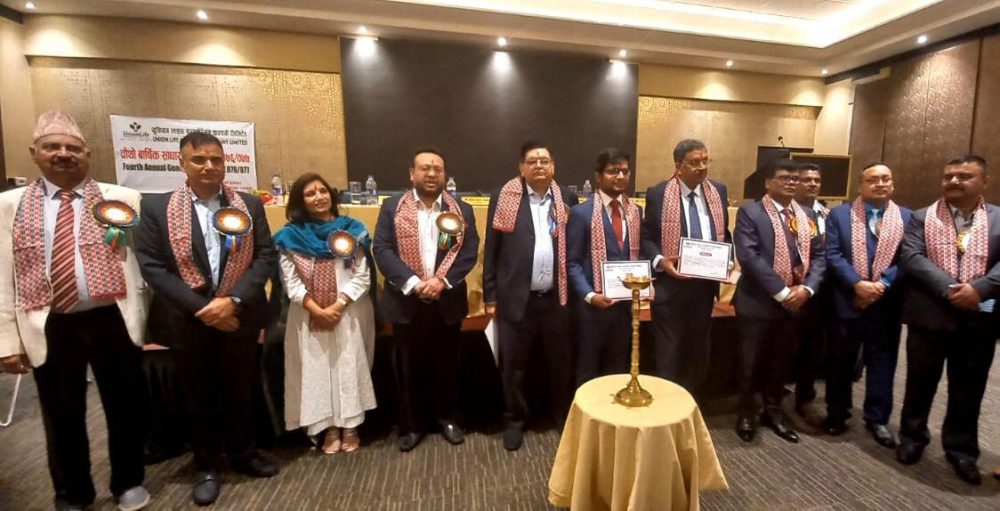 काठमाडौं । युनियन लाइफ इन्स्योरेन्स कम्पनी लिमिटेडको चौथो वार्षिक साधारण सभा भैरहवामा सम्पन्न भएको छ । आर्थिक वर्ष २०७६–०७७ को वार्षिक साधारण सभाले महत्त्वपूर्ण निर्णयहरु गरेको छ । सो साधारण सभाले कम्पनीको नयाँ संचालक चयन गरेको छ ।