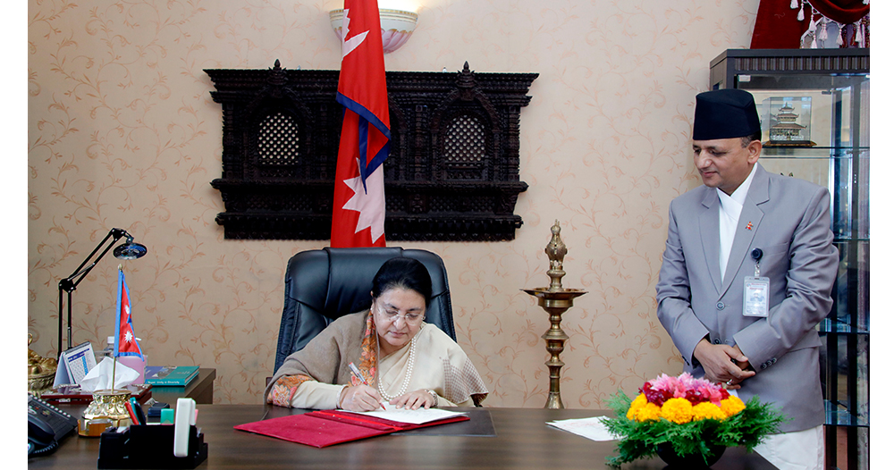 राष्ट्रपति विद्यादेवी भण्डारीद्वारा दुई अध्यादेश जारी