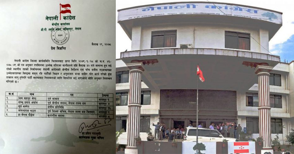 चितवनका पाँच नेतालाई कांग्रेसले गर्यो निलम्बन