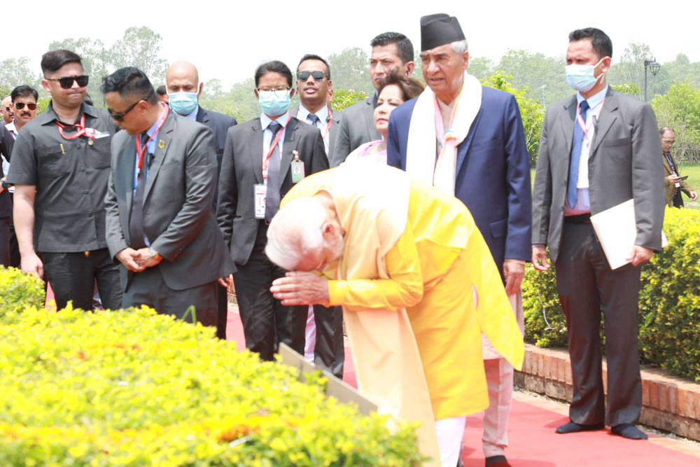 दुबै देशका प्रधानमन्त्रीहरुले पूजाअर्चना गरिरहँदा बौद्ध भिक्षुहरुले बुद्धबन्दना गरेका थिए । भारतका विशिष्ठ अतिथिले मायादेवी मन्दिर परिसरमा रहेको पवित्र सरोवरको परिक्रमा गर्नुका साथै यहाँस्थित अशोक स्तम्भमा द्वीपप्रज्ज्वलनसमेत गरेका थिए ।