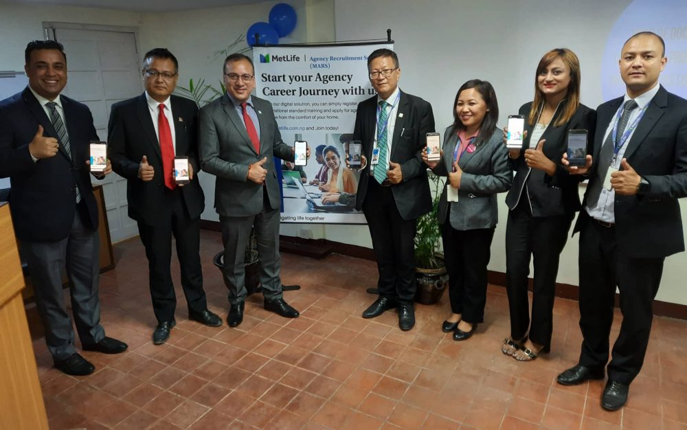 काठमाडौं । मेटलाइफ नेपालले डिजिटल माध्यमबाट बिमा सल्लाहकारहरू भर्ना गर्न नेपालमै पहिलोपटक मेटलाइफ एजेन्सी रेक्रुटमेन्ट सोलुसन प्लेट फर्म सुरु गरेको छ । बिमा सल्लाहकारहरूको छनोट तथा भर्नाका लागि ल्याइएको यस अभिनव डिजिटल सोलुसनको अनावरण मेटलाइफका उपाध्यक्ष तथा महाप्रबन्धक निर्मलकाजी श्रेष्ठले अन्य वरिष्ठ अधिकारीहरूसँग कम्पनीको मुख्य कार्यालय काठमाडौंमा गरेका थिए ।