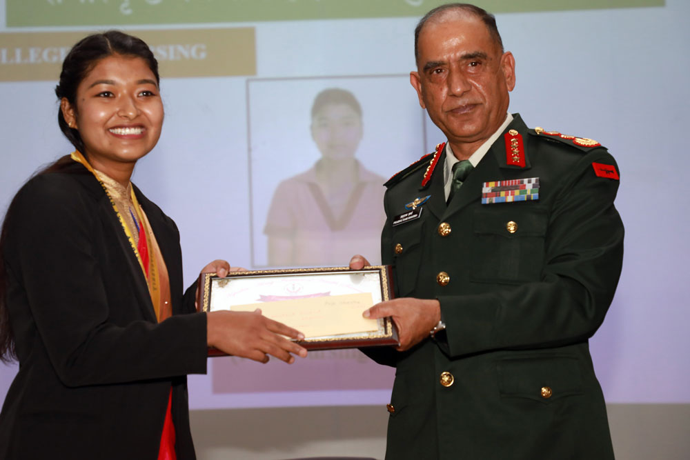 नेपालको समग्र शैक्षिक अवस्थालाई अभिवृद्धि गर्ने पवित्र कार्यमा संस्थानलगायत अन्य शिक्षण संस्थानमार्फत थोरै भए पनि योगदान गर्न पाउनु नेपाली सेनाका लागि गौरवको विषय बनेको उनको भनाइ थियो । उनले भविष्यमा यस्ता शिक्षण कार्यको परिधिलाई फराकिलो पार्दै थप कार्यक्रम ल्याउने कुरामा संस्थानले अझै कोशिष गर्ने अेपक्षा राखे ।