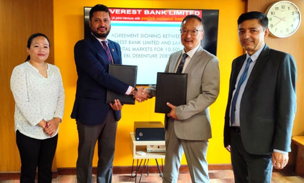 काठमाडौं। एभरेष्ट बैंकले दुई अर्ब रुपैयाँ बराबरको ऋणपत्र निष्काशन गर्ने भएको छ । ऋणपत्र निष्कासन तथा बिक्री प्रबन्धक लागि लक्ष्मी क्यापिटलसँग सम्झौता गरेकाे छ । सम्झौतामा एभरेष्ट बैंकका प्रमुख कार्यकारी अधिकृत सुदेश खालिङ र लक्ष्मी क्यापिटल मार्केटका प्रमुख कार्यकारी अधिकृत राजिव सापकोटाले हस्ताक्षर गरेका छन् ।
