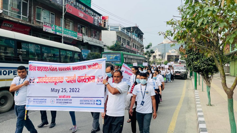 ललितपुर । थाइराइड भएका बिरामीका लागि ललितपुरको जावलाखेलमा रहेको अल्का अस्पताल प्रालिले बुधबार निःशुल्क स्वास्थ्य शिविर आयोजना गरेको छ । विश्व थाइराइड दिवसका अवसरमा अल्का अस्पतालले थाइराइड भएका बिरामी लक्षित गर्दै निःशुल्क स्वास्थ्य शिविर आयोजना गरेको हो ।
