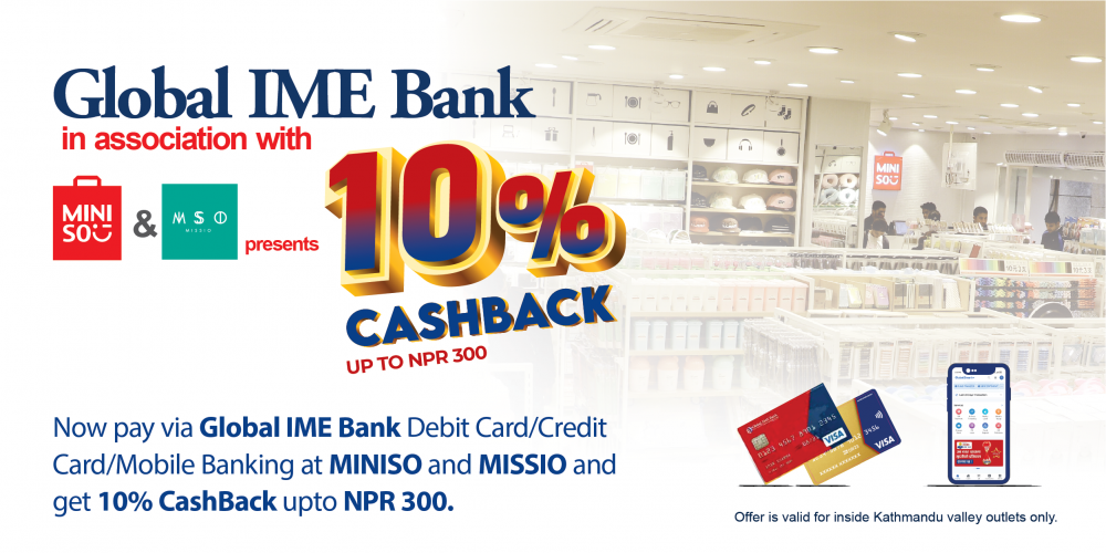 ग्लोबल आईएमईका ग्राहकलाई मिनिसो, मिसियो स्टोरमा सामान किन्दा १० प्रतिशत क्यास ब्याक