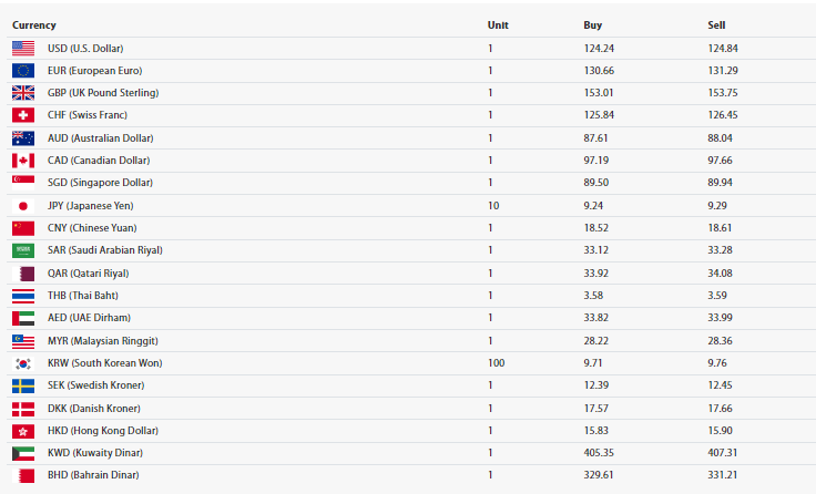 अमेरिकन १ डलरको भाउ १२४ रुपैयाँ २४ पैसा र बिक्रीदर १२४ रुपैयाँ ८४ पैसा