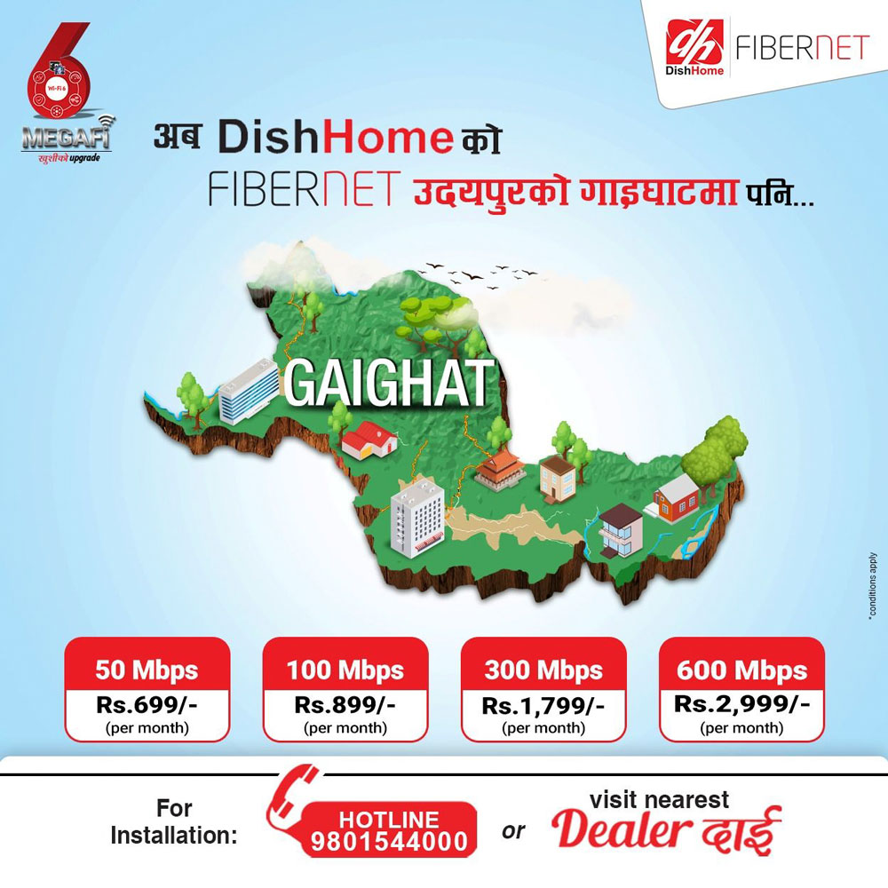 समग्र नेपालमा पुग्ने लक्ष्य लिएको डिशहोम फाइबरनेट हाल उदयपुरको गाइघाटमा सुरुवात भएको छ । छिटै नेपालका अन्य स्थानमा पनि पुग्ने कम्पनीले जनाएको छ ।