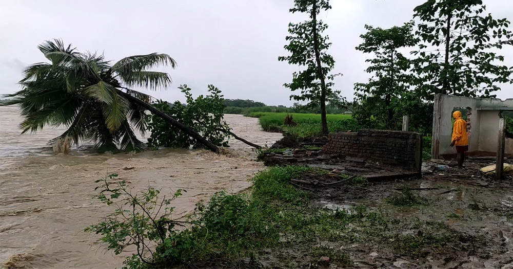 झापा । झापाको रतुवा खोलामा अविरल वर्षापछि आएको बाढीले जमिन कटान गर्दा १३ घरपरिवार विस्थापित भएका छन् भने २५ घर डुबानमा परेको छ । बाढीले दमक नगरपालिका ७, रेडक्रस भवन पछाडिको खोला किनार नजिक रहेको बस्तीमा बाढीले कटान गर्दा ती घर विस्थापित भएको जिल्ला प्रहरी कार्यालय झापाका प्रवक्ता प्रहरी नायब उपरीक्षक वसन्त पाठकले जानकारी दिएका छन् ।