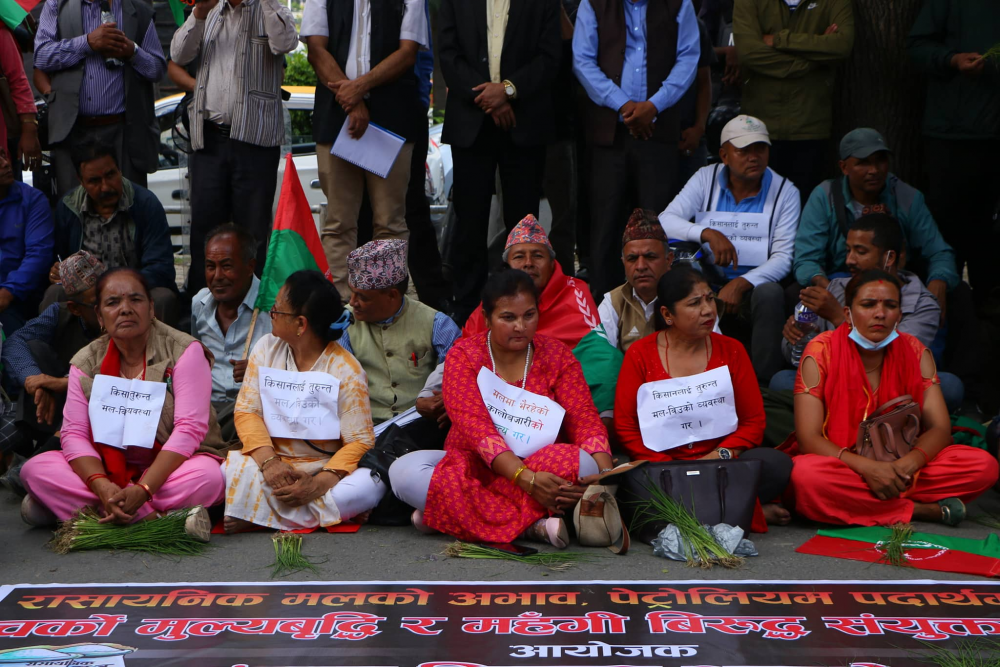 किसान महासंघ र अखिल नेपाल किसान युनियनले बुधबार रासायनिक मलको अभाव, पेट्रोलियम पदार्थमा भएको चर्को मूल्यवृद्धि र महँगीविरुद्ध संयुक्त रूपमा प्रदर्शन गरेको हो । आन्दोलनरत किसानहरुले बढ्दो महँगी नियन्त्रण गर, किसानलाई तुरुन्त मल-बीउको व्यवस्था गर, मलमा भइरहेको कालोबजारीको अन्त्य गरलगायत नारा लेखिएका प्लेकार्डहरु प्रदर्शनसमेत गरेका थिए ।