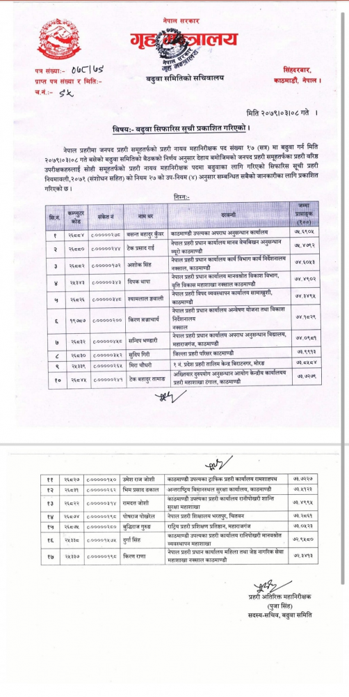 यी हुन् डीआईजी बढुवामा सिफारिस हुने १७ एसएसपी ! (नामसहित)
