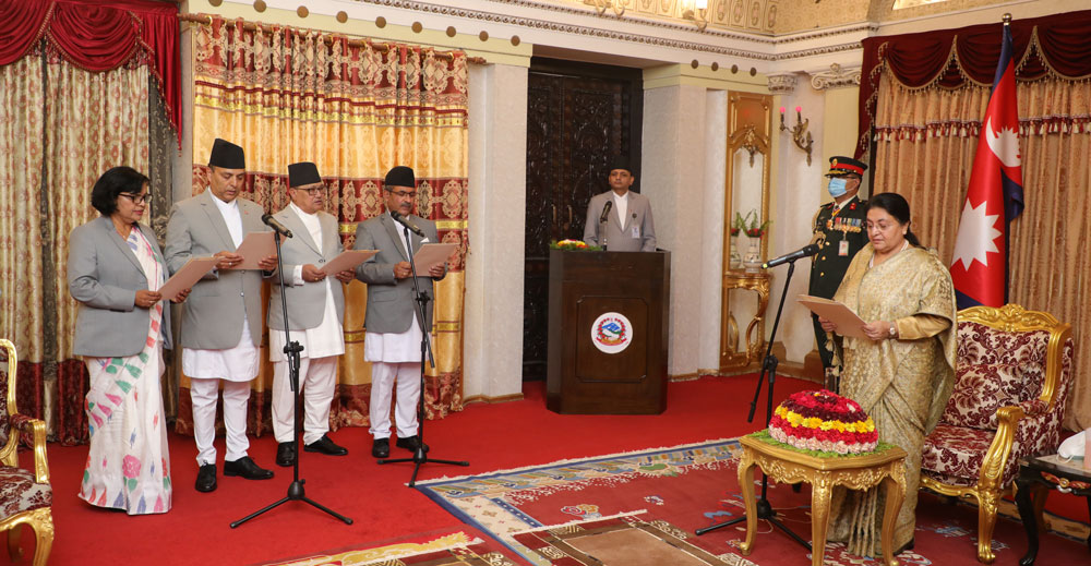राष्ट्रपति भवनमा शीतलनिवासमा आज (बिहीबार) आयोजित विशेष समारोहमा उनीहरुले शपथ लिएका हुन् । शपथ लिने राजदूतहरुमा नरेशविक्रम ढकाल (कतार), विष्णुपुकार श्रेष्ठ (चीन), कैलाशराज पोखरेल (अस्ट्रेलिया) र कान्ता रिजाल (इजरायल) छन् ।