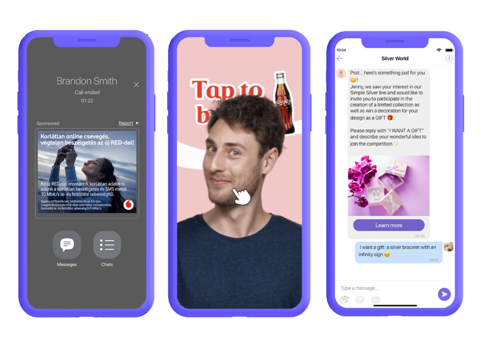 नयाँ दर्शकहरूका साथ जोडिन मेसेजिङ एपहरूसँग धेरै तरिकाहरू छन् । उदाहरणका लागि, रुचि, लोकेशन, लिङ्ग र उमेरको आधारमा प्रयोगकर्ताहरूको विशेष समूहलाई लक्षित गरी विज्ञापन गर्दा आउने समस्या समाधान गर्न भाइबरले मद्दत गर्छ । व्यापारिक मेसेजहरू ब्राण्डहरूका लागि हुन् जसको आफ्नै ग्राहक डेटा हुन्छ र ब्राण्डबारे सचेतना निर्माण गर्नका लागि ब्राण्डहरूले समाचार, उत्पादन अपडेटहरू, विशेष प्रस्तावहरू, नयाँ सुविधाहरू वा आफ्ना गतिविधिहरूको बारेमा आफ्ना अवस्थित र सम्भावित ग्राहकहरूलाई जानकारी दिनका लागि साझा गर्न सक्छन् ।साथै, मेसेजिङ एपहरूको अनुप्रयोग गरी अन्य ब्राण्डहरूसँग सह(प्रमोशनहरू गर्दा पनि प्रभावकारी हुनसक्छ ।