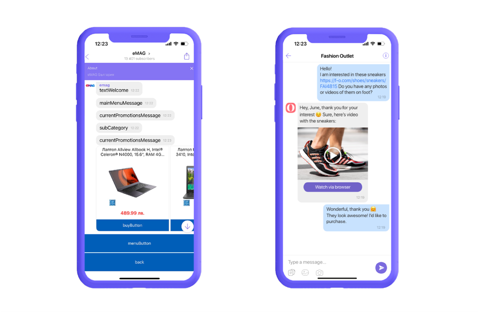 भाइबरमा अन्तरक्रियात्मक बिजनेस मेसेजहरू र च्याटबटहरूको उदाहरणहरू