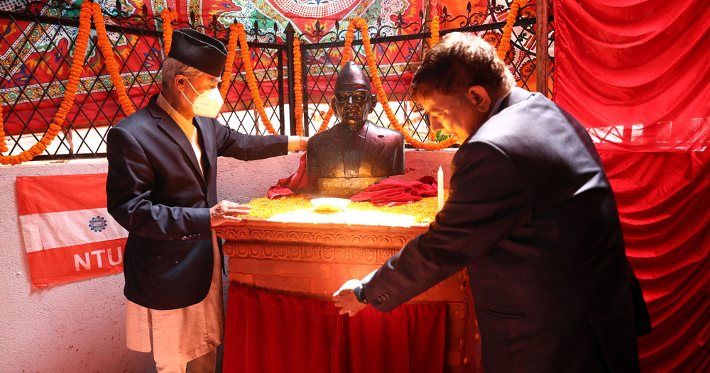 काठमाडौं । नेपाली कांग्रेसका सभापति एवं प्रधानमन्त्री शेरबहादुर देउवाले नेपाल ट्रेड युनियन कांग्रेसका संस्थापक नेता एवं पूर्व प्रधानमन्त्री गिरिजाप्रसाद कोइरालाको शालिक अनावरण गरेका छन् । कोइरालाको ९९ औँ जन्मजयन्तीका अवसरमा गिरिजाप्रसाद कोइराला श्रमिक स्मृति भवन अनामनगरमा निर्माण गरिएको सो अर्धकदको शालिकको आज बिहान प्रधानमन्त्री देउवाले अनावरण गरेका हुन् ।