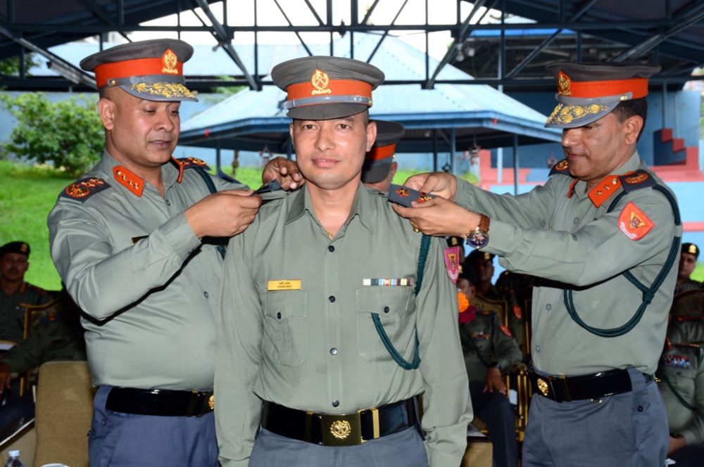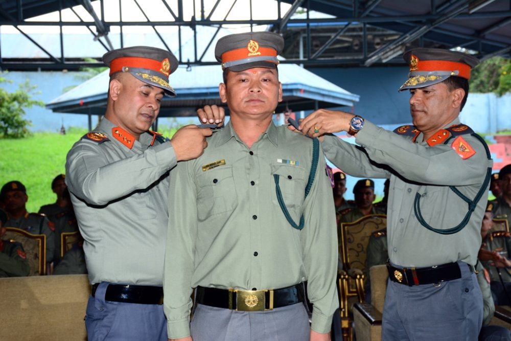 काठमाडौ । सशस्त्र प्रहरी महानिरीक्षक राजु अर्यालले सशस्त्र प्रहरी बल नेपाल प्रधान कार्यालय हल्चोक स्वयम्भूमा असार २७ गते आयोजित एक समारोहकाबीच हालै पदोन्नती भएका ५७ जना अधिकृतहरुलाई दर्ज्यानी चिह्न प्रदान गरे ।