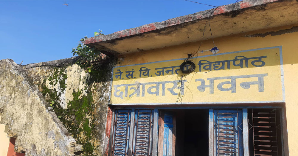 तुलसीपुर । मानिसको बसोबासजस्तो देखिँदैन । वरिपरि घाँसैघाँस उम्रिएको छ । भित्तामा पानी चुहिएको जस्तो देखिन्छ । सरसफाइ छैन । भवन पनि भत्किन थालेको जस्तै देखिन्छ । यस्तो छ – नेपाल सस्कृत विश्वविद्यालय जनता विद्यापीठको तुलसीपुर–१८ विजौरीस्थित छात्राबास भवन ।
