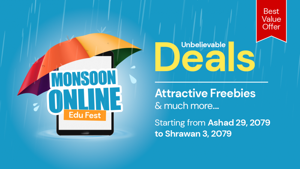 मनसुन अनलाइन एडुफेस्ट नाम दिएको उक्त ज्ञान मेला डिजिटल माध्यममा एक हप्तासम्म चल्नेछ। नीमा एकेडेमी ई–लर्निङ्ग प्लेटफर्मले पाठ्यक्रम विकास केन्द्रद्वारा अनुमोदित, विशेष गरी कक्षा १ देखि १० सम्मका विद्यार्थीहरुलाई लक्षित गरी अनलाइन पाठ्यक्रमहरुको बन्डल प्याकेज भारी छुटमा प्रदान गर्दैछ। उदयमान विद्यार्थीलाई गुणस्तरीय शिक्षा किफायती मूल्यमा आकर्षक उपहार सहित उपलब्ध गराउने कुरा कम्पनीले विज्ञप्ति मार्फत जानकारी दिएको छ ।
